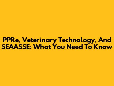 PPRe, Veterinary Technology, And SEAASSE: What You Need To Know