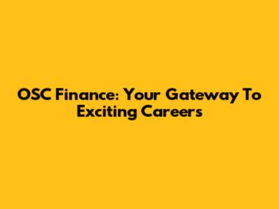 OSC Finance: Your Gateway To Exciting Careers