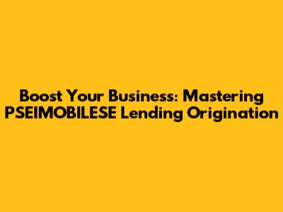 Boost Your Business: Mastering PSEIMOBILESE Lending Origination