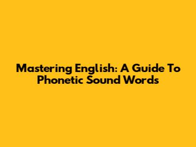 Mastering English: A Guide To Phonetic Sound Words