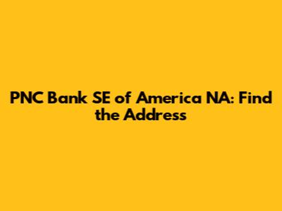 - Search for “PNC Bank SE of America NA address” along with any specific details (e.g., “customer service,” “loan payments,” etc.).