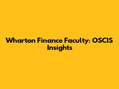 Wharton Finance Faculty: OSCIS Insights