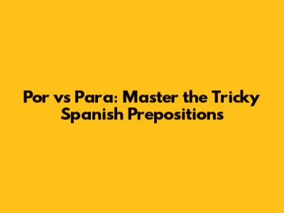 Hey guys! Learning Spanish can be super exciting, but let's be real, some things can be a bit tricky. One of the most common stumbling blocks for Spanish learners is figuring out when to use "por" and when to use "para." These two prepositions can both translate to "for" in English, which just adds to the confusion. But don't worry, we're going to break it down and make it crystal clear. By the end of this article, you'll be a por and para pro! We'll look at common uses, memory tricks, and examples so you can confidently choose the right preposition every time. So, buckle up and let's dive into the world of Spanish prepositions! The key to mastering por and para lies in understanding their different purposes. Think of por as generally indicating a cause, reason, exchange, or means of doing something. On the other hand, para usually points to a purpose, goal, recipient, or destination. Keeping these broad categories in mind will help you start to differentiate between the two. Are you ready to take your Spanish to the next level? Let's get started and conquer these prepositions once and for all! Remember, practice makes perfect, so don't be afraid to use these new skills in your everyday conversations.