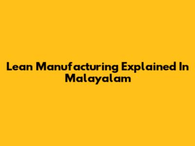 Lean Manufacturing Explained In Malayalam