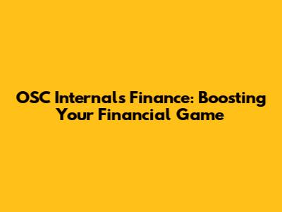 OSC Internals Finance: Boosting Your Financial Game