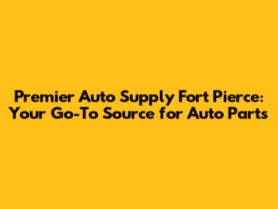 Hey guys! Are you looking for premier auto supply in Fort Pierce? Look no further! Finding the right auto parts can be a real headache, but when you've got a reliable supplier in your corner, it makes all the difference. Let's dive into why Premier Auto Supply in Fort Pierce should be your first stop for all things automotive.