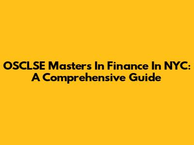 OSCLSE Masters In Finance In NYC: A Comprehensive Guide