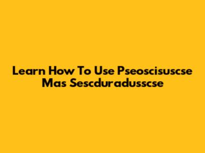 Learn How To Use Pseoscisuscse Mas Sescduradusscse