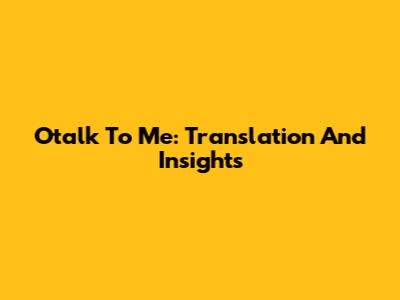 Otalk To Me: Translation And Insights