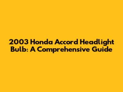 2003 Honda Accord Headlight Bulb: A Comprehensive Guide