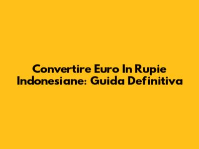 Convertire Euro In Rupie Indonesiane: Guida Definitiva
