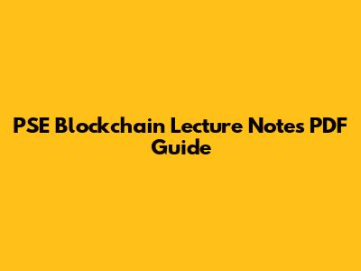 PSE Blockchain Lecture Notes PDF Guide