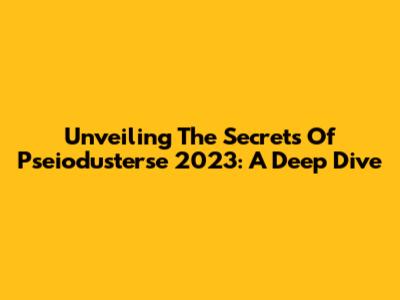 Unveiling The Secrets Of Pseiodusterse 2023: A Deep Dive