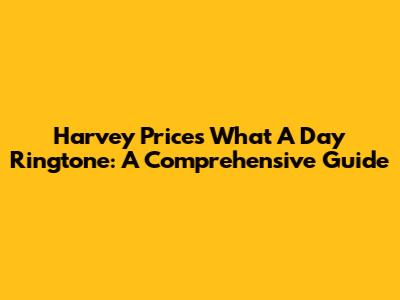 Harvey Price's 'What A Day' Ringtone: A Comprehensive Guide