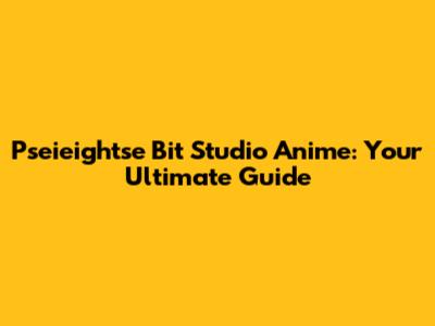 Diving into Pseieightse Bit Studio's Anime World