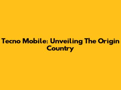 Tecno Mobile: Unveiling The Origin Country