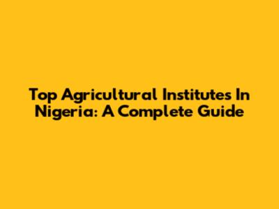 Top Agricultural Institutes In Nigeria: A Complete Guide