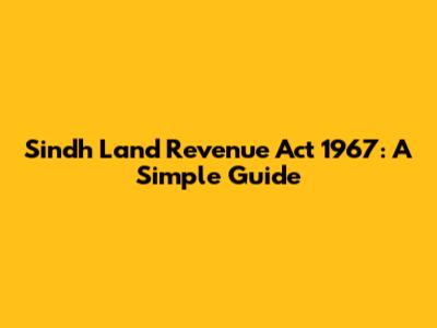 Sindh Land Revenue Act 1967: A Simple Guide