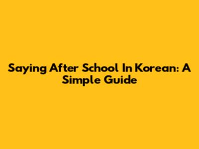 Saying 'After School' In Korean: A Simple Guide