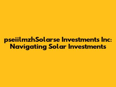 Let's dive into the world of pseiilmzhSolarse Investments Inc, a topic that might sound like a mouthful, but it's actually pretty straightforward once we break it down. This article will serve as your guide to understanding what pseiilmzhSolarse Investments Inc is all about, particularly in the context of solar investments. We’ll explore the ins and outs, making sure you're well-equipped to navigate this sector. Whether you're a seasoned investor or just starting to dip your toes into the investment pool, understanding the nuances of companies like pseiilmzhSolarse can be incredibly beneficial. So, buckle up, and let’s get started on this solar-powered journey! We’ll be covering everything from the basic concepts to more advanced strategies, ensuring that you have a comprehensive understanding of how pseiilmzhSolarse Investments Inc operates within the broader solar energy market. Remember, investing always carries some level of risk, but with the right knowledge and approach, you can make informed decisions that align with your financial goals. Think of this article as your personal compass, guiding you through the sometimes complex landscape of solar investments and helping you to identify opportunities that are right for you. So, let's jump right in and uncover the potential that pseiilmzhSolarse Investments Inc holds in the exciting world of renewable energy!