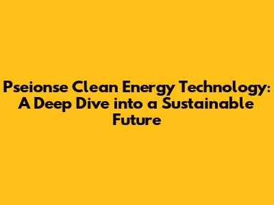 The Future of Pseionse Clean Energy Technology