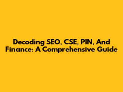 Decoding SEO, CSE, PIN, And Finance: A Comprehensive Guide