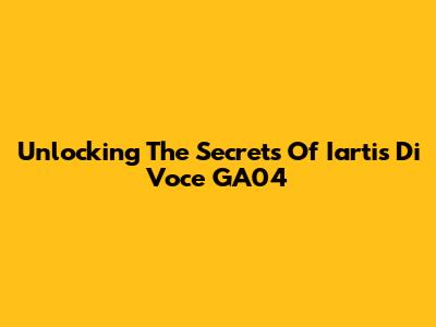 Unlocking The Secrets Of Iartis Di Voce GA04