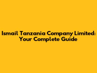 Ismail Tanzania Company Limited: Your Complete Guide