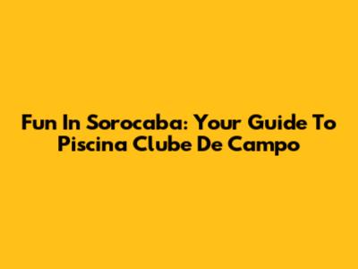 Fun In Sorocaba: Your Guide To Piscina Clube De Campo