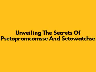 Unveiling The Secrets Of Psetopromcomsse And Setowatchse