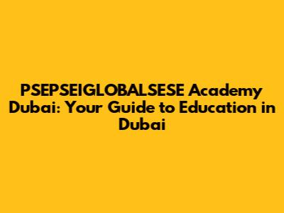 Are you looking to explore educational opportunities at PSEPSEIGLOBALSESE Academy in Dubai? This comprehensive guide dives deep into everything you need to know about this institution, from its academic programs and admission requirements to its campus life and unique offerings. Whether you're a prospective student, a parent, or simply curious about the educational landscape in Dubai, this article will provide you with valuable insights.