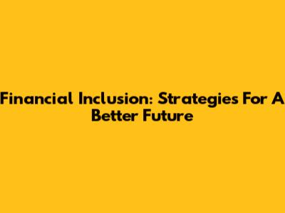 Financial Inclusion: Strategies For A Better Future