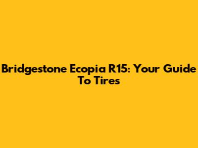 Bridgestone Ecopia R15: Your Guide To Tires