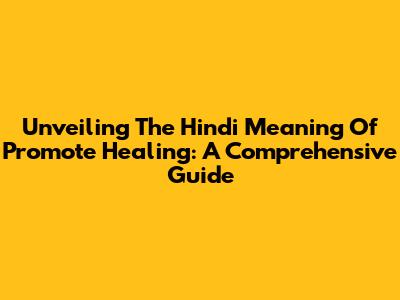Unveiling The Hindi Meaning Of Promote Healing: A Comprehensive Guide