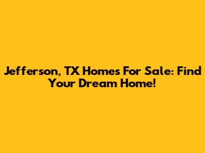 Jefferson, TX Homes For Sale: Find Your Dream Home!