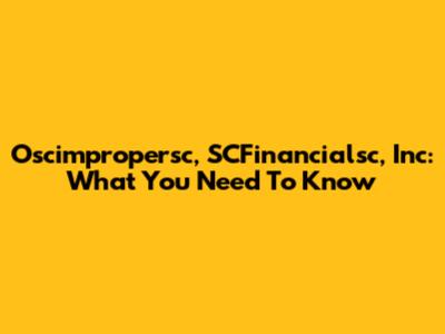 Oscimpropersc, SCFinancialsc, Inc: What You Need To Know
