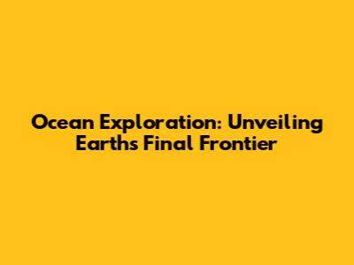 Ocean Exploration: Unveiling Earth's Final Frontier