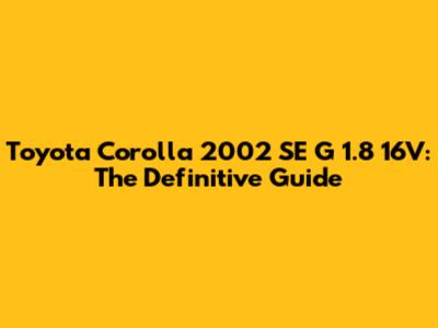Toyota Corolla 2002 SE G 1.8 16V: The Definitive Guide