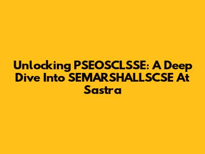 Unlocking PSEOSCLSSE: A Deep Dive Into SEMARSHALLSCSE At Sastra