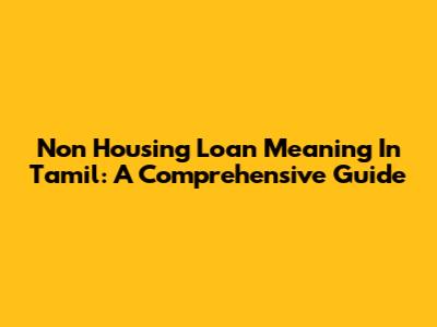 Non Housing Loan Meaning In Tamil: A Comprehensive Guide