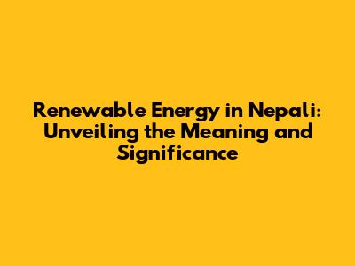The Nepali Meaning of Renewable Energy and Its Importance