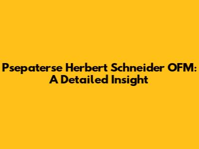 Psepaterse Herbert Schneider OFM: A Detailed Insight