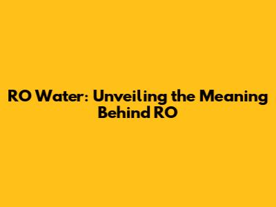 Hey there, water enthusiasts! Ever wondered what those mysterious letters "RO" stand for when you see them on a water filter or dispenser? Well, guys, you're in the right place! We're diving deep into the world of RO water, decoding its acronym, and exploring everything you need to know about this popular purification method. So, buckle up, grab your favorite reusable water bottle, and let's get started on this exciting journey!