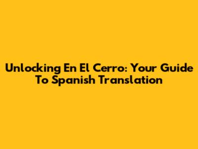 Unlocking 'En El Cerro': Your Guide To Spanish Translation