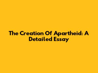 The Creation Of Apartheid: A Detailed Essay