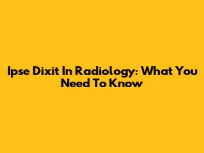 Ipse Dixit In Radiology: What You Need To Know