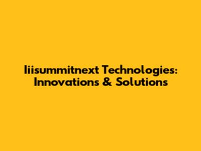 Iiisummitnext Technologies: Innovations & Solutions