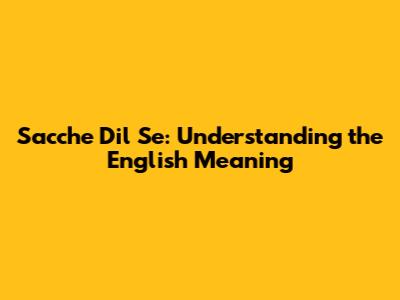 What Does "Sacche Dil Se" Really Mean?