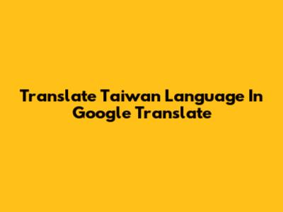 Translate Taiwan Language In Google Translate