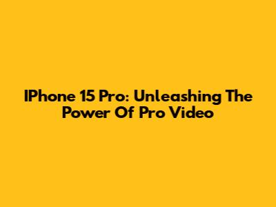 IPhone 15 Pro: Unleashing The Power Of Pro Video